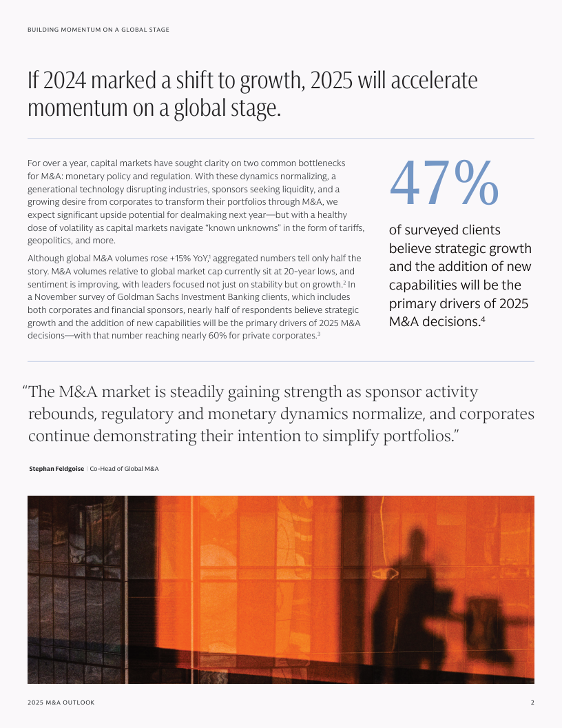 Goldman Sachs 2025 M&A Outlook: Building Momentum on a Global Stage